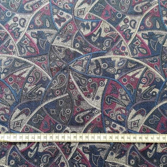 Der Purple Looking Around Aborigines Stoff besticht durch seine hochwertige, feine Baumwollqualität und ein unverwechselbares Design, das die Traumzeit-Geschichten der Aborigines erzählt. Entworfen von talentierten Aborigines KünstlerInnen, ist jedes Muster ein kleines Kunstwerk.