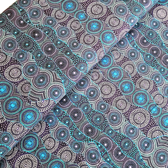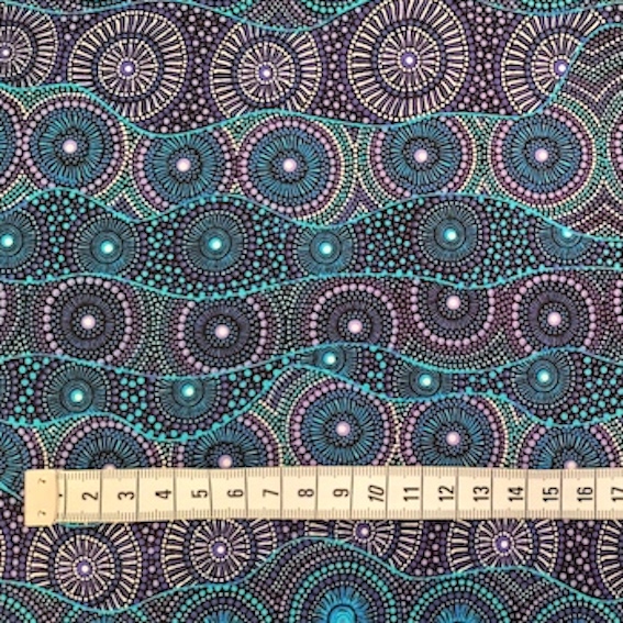 Der ALPARA SEEDS BLUE Aborigines Stoff ist ein hochwertiger Baumwollstoff, der Kunst und Kultur der Aborigines auf faszinierende Weise verbindet. Dieser feine Stoff begeistert mit einem einzigartigen Design, das von Aborigines-Künstler entworfen wurde und die Geschichten der Traumzeit erzählt. Jedes Muster ist ein wahres Kunstwerk und verleiht dem Stoff eine besondere, authentische Ausstrahlung.