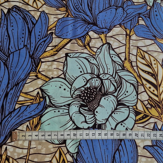 Afrikanischer Wax Print Stoff Baumwolle – Blue Flowers kaufen