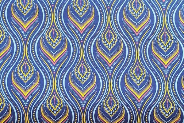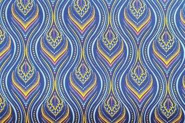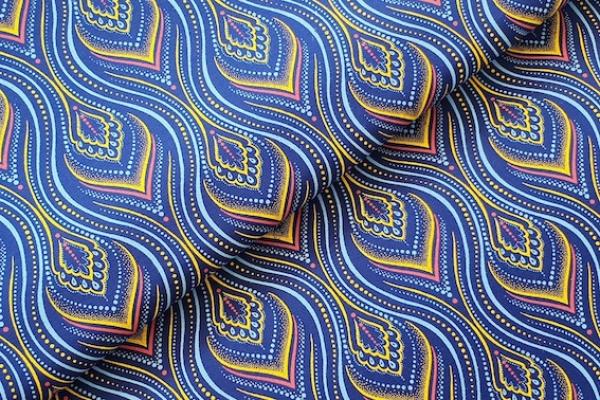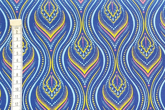 BLUE YELLOW FLAME – Afrikanischer Shweshwe Stoff für kreative Designs