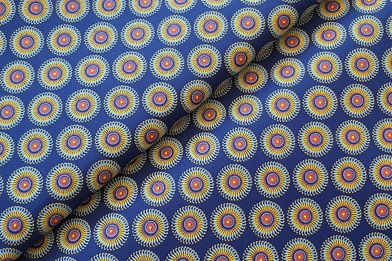 Blue Yellow Sunflower: Exotischer Shweshwe Stoff für kreative Designs