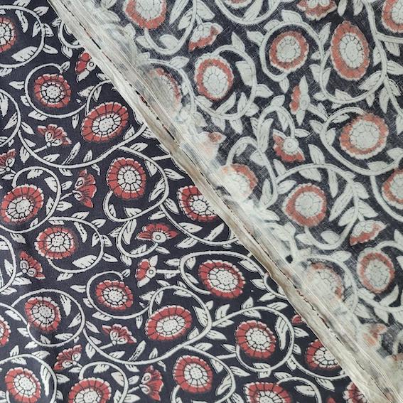 Bagru Hand Block Stoff – Kleine Blüten auf weichem Baumwollstoff