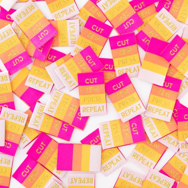 Bringen Sie Farbe und Kreativität in Ihre Nähprojekte mit unseren Bekleidungsetiketten – Cut Sew Press Repeat.