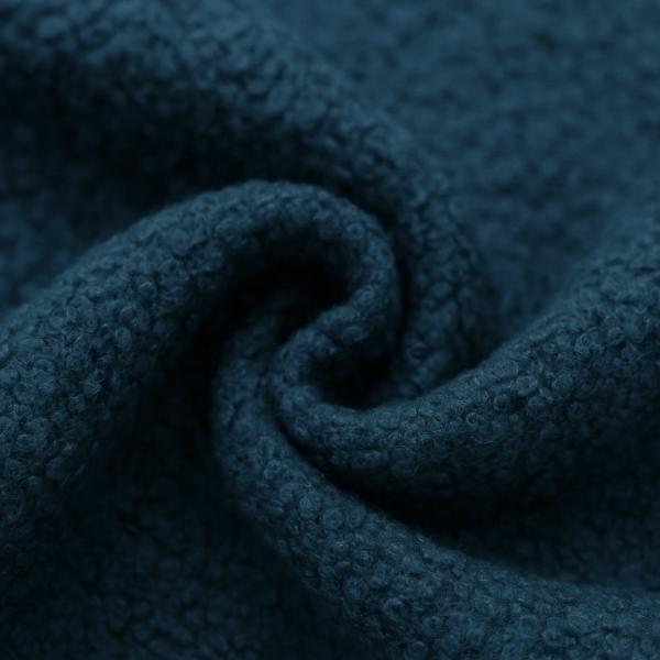 Bouclé-Stoffe sind bekannt für ihre charmant unregelmäßige, geschlungene Oberfläche, die ihnen ein außergewöhnliches Volumen und eine einzigartige Haptik verleiht. Der Dunkel-Jeans-Ton betont diese Struktur auf subtile Weise und sorgt so für Tiefe und visuelle Spannung.