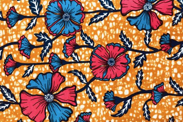 Bringen Sie mit dem PINK BLUE SUMMER FLOWER Afrikanischen Wax Print Stoff ein blumiges Feuerwerk in Pink und Blau in Ihre Nähprojekte und lassen Sie sich von seiner Schönheit verzaubern. Kreieren Sie einzigartige Meisterwerke, die Ihre Persönlichkeit widerspiegeln und die Wärme des Sommers einfangen.