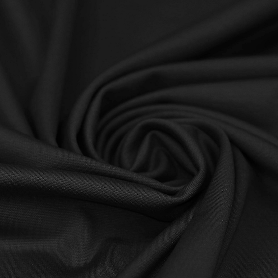 Der Punto di Milano Jerseystoff in Schwarz ist die perfekte Wahl für alle, die auf der Suche nach einem strapazierfähigen, dennoch eleganten Stoff für selbstgenähte Kleidung sind. Mit seiner festen Struktur, der hochwertigen Materialmischung und einem angenehmen Tragegefühl eignet sich dieser Jersey ideal für figurbetonte Schnitte, Businessmode und moderne Alltagslooks.