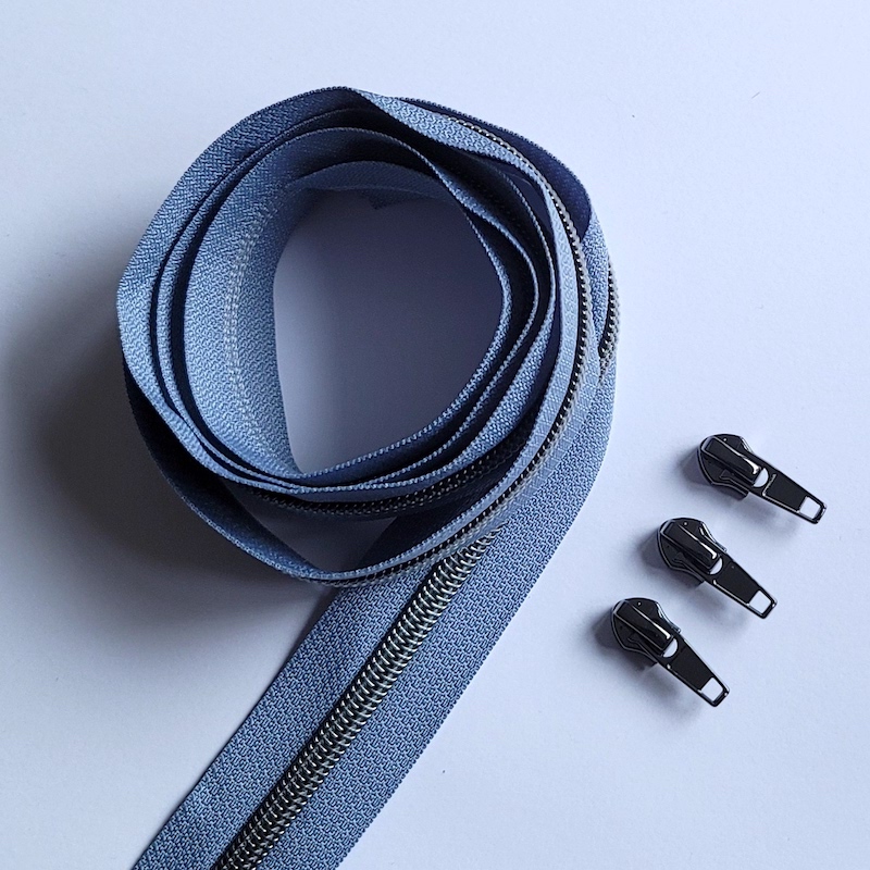 Reissverschluss & Zipper Set (Gunmetal/Pastellblau)