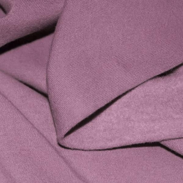 Der Sweatstoff Alt Flieder Angeraut kombiniert modische Eleganz mit Gemütlichkeit. Der sanfte Fliederton bringt Frische und einen Hauch Romantik in deine selbstgenähten Kleidungsstücke, während die angeraute Innenseite für angenehme Wärme und ein besonders weiches Tragegefühl sorgt.
