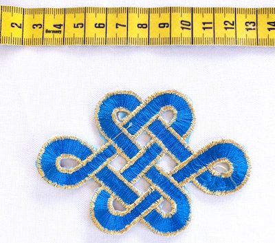 Die BLUE ORNAMENT Applikation mit den Maßen 6,5 cm x 9,5 cm bringt traditionelles Design aus Zentralasien in Ihre Projekte. Perfekt für Kleidung, Taschen oder Heimtextilien.