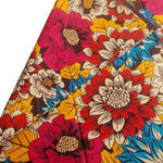 Prächtiger afrikanischer Wax-Print aus 100 % Baumwolle mit farbenfrohemBlumenmuster. Dieser authentische Ankara besticht durch kräftige, leuchtende Farbtöne, robuste Verarbeitung und angenehme Tragequalität. Perfekt für lebendige Kleidungsstücke wie Kleider, Röcke und Blusen sowie für Accessoires und Heimtextilien. Das verspielte Blumenmotiv verleiht Ihren Kreationen exotischen Charakter und modernen Stil. Flexibel nach Meter zuschneidbar – ganz nach Ihren persönlichen Wünschen.