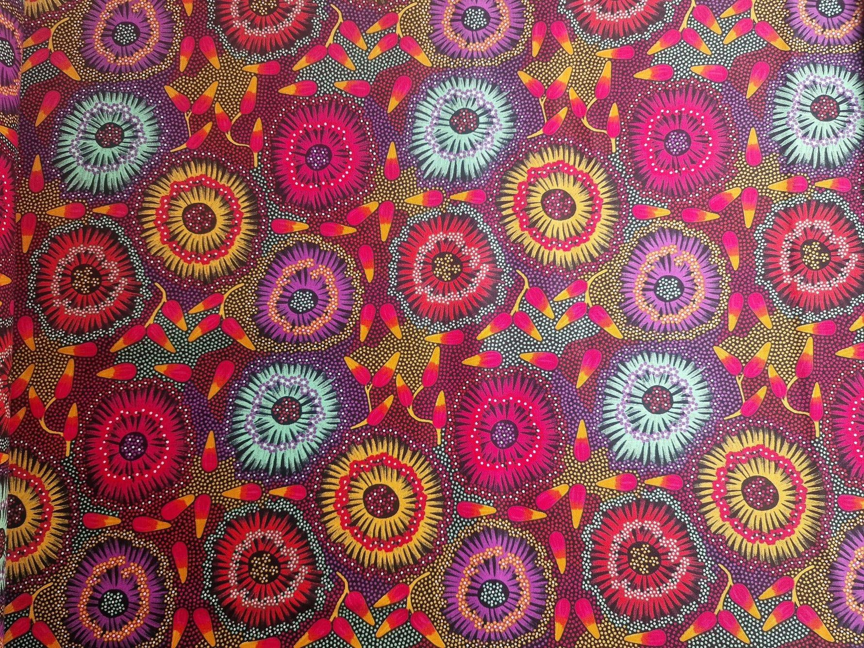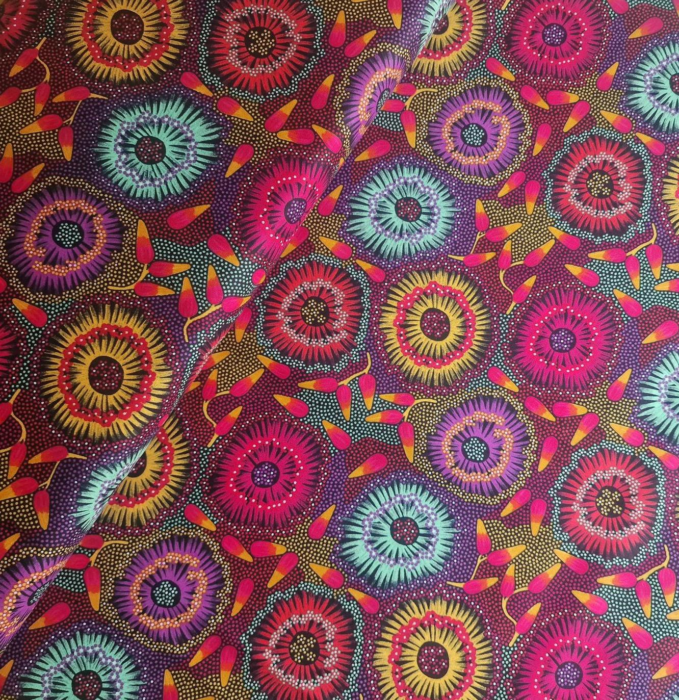 Aborigines Stoff aus Australien "Wild Bush Banana Red" - Baumwolle Meterware