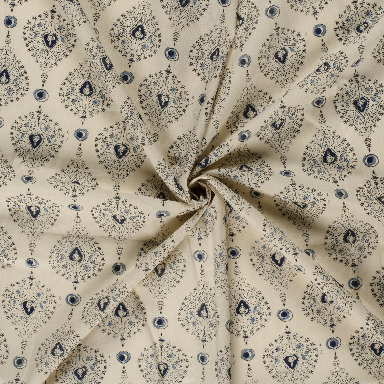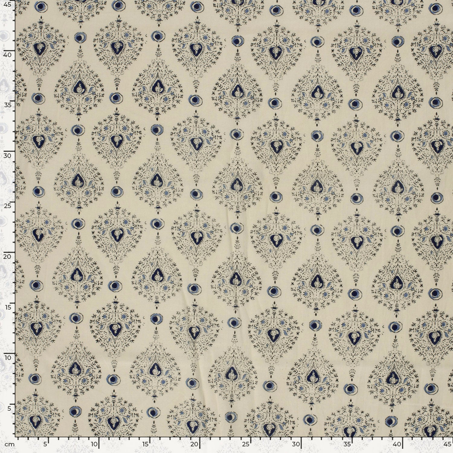 Feiner Baumwoll-Voile aus Indien mit subtilen geometrischen Mustern auf weißem Grund. Der halbtransparente Digitaldruck verbindet traditionelle indische Blockprint-Ästhetik mit zeitgenössischem Design. Dieser luftige, leichte Stoff bietet hervorragende Atmungsaktivität und Tragekomfort – perfekt für Sommerkleidung, fließende Blusen und raffinierte Accessoires. Die hochwertige Baumwolle gewährleistet Langlebigkeit und Hautverträglichkeit. Mit einer Breite von ca. 110 cm und einem angenehmen Griff eignet sich dieser Voile hervorragend für Kleider, Tuniken und leichte Schals. Bestellen Sie flexibel nach Meter für Ihre individuellen Nähprojekte – ab 0,5 m in 0,1 m Schritten erhältlich.