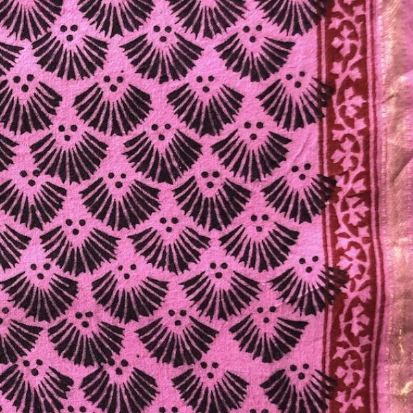 Der Hand Block Print – PURPLE BOOTI bringt die Schönheit indischer Textilkunst auf einen fein gewebten, leichten Baumwoll-Batist, der sich wunderbar weich anfühlt und luftig auf der Haut liegt. Das zarte Booti-Muster in einem satten Purpurton wurde von lokalen Handwerkerinnen in Indien mit traditionellen Holzstempeln per Hand aufgetragen – jeder Druck ein Zeichen echter Handarbeit.